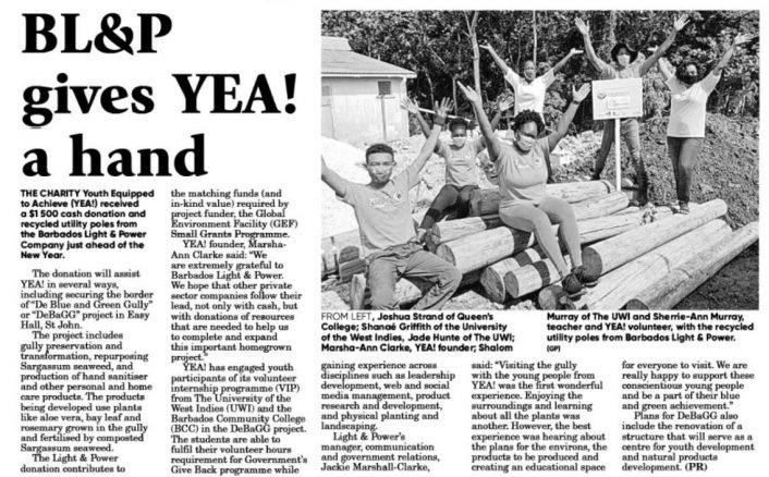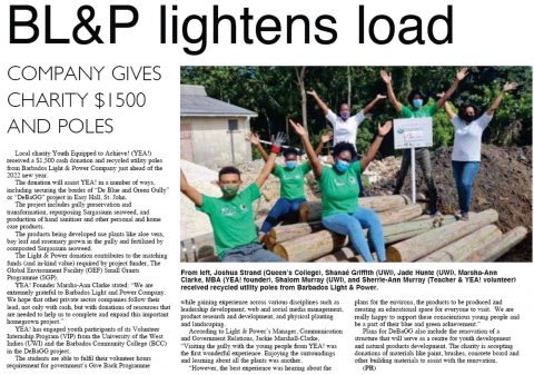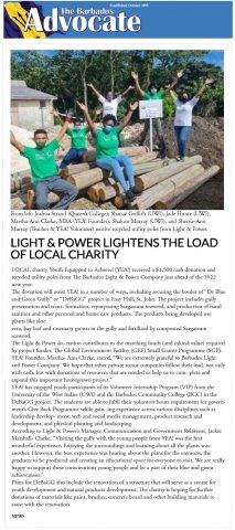 Newspaper article on barbadostoday.bb about the donation of poles from the Barbados Light and Power Company.